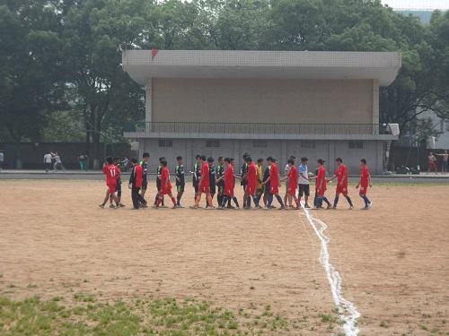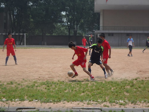 随着主裁判哨声一响,双方就开始围绕着球激烈的奔着、跑着,空中不断划过一道道美丽的弧线。比赛异常激烈,双方无一进球,所以进入了加时赛。虽然天气有些许燥热,但在加时赛中双方仍是激情四射,炎炎烈日下丝毫没有懈怠。经过之前的比赛,双方开始了解对方的情况,为此我方制定了新的作战方案。新的方案会产生新的结果,于是加时赛的上半场,8号蔡航一脚将球射入对手的球门,为学院赢得一球,同时也鼓舞了队员们的士气。中场休息后,加时赛的下半场更精彩。双方你来我往,互不相让,拉拉队也为此喊得是热火朝天,相互都不甘示弱。最终,我方发起猛攻,15号冯泽鼎为学院又拿到一球。