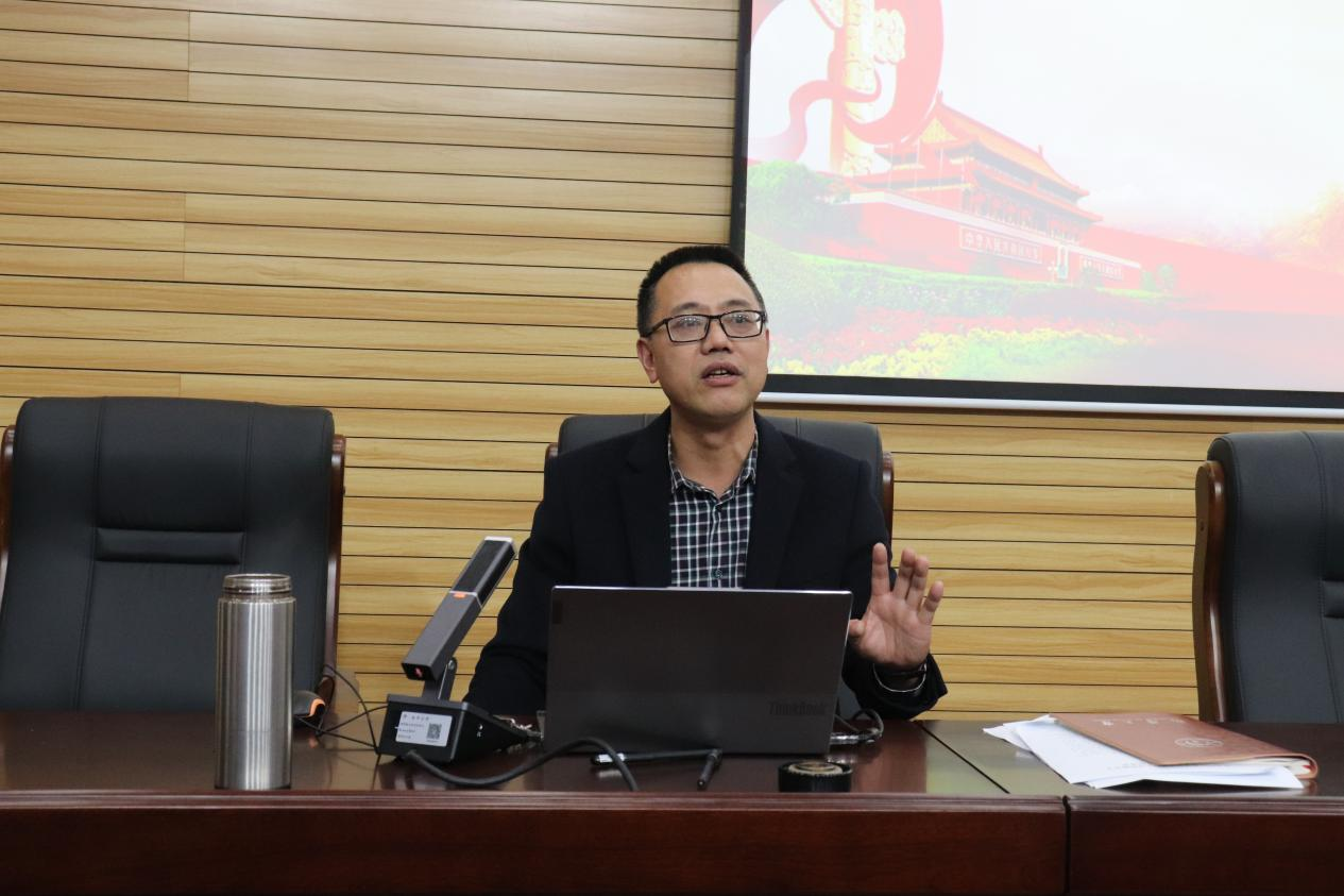 大会在雄壮的国歌声中开始。学生第一党支部书记、培训班班主任管龙陵老师向介绍了本次培训班的教学计划、纪律要求和相关课程安排。随后,盛义发书记为开班仪式致辞。盛书记引用习近平总书记在党的二十大报告中对青年工作的论述,寄予了培训班的同学们三点期望:一要明确培训目的,严守培训纪律;二要学思践悟,坚定理想信念;三要认真努力实践,争做先锋楷模。盛书记强调,培训班的同志们要通过本次培训,进一步提高自己的党性修养,争取早日加入中国共产党。典礼结束后,学院党委副书记王国平老师以“深入学习贯彻习近平新时代中国特色社会主义思想”为主题,开展了第一场理论教学。