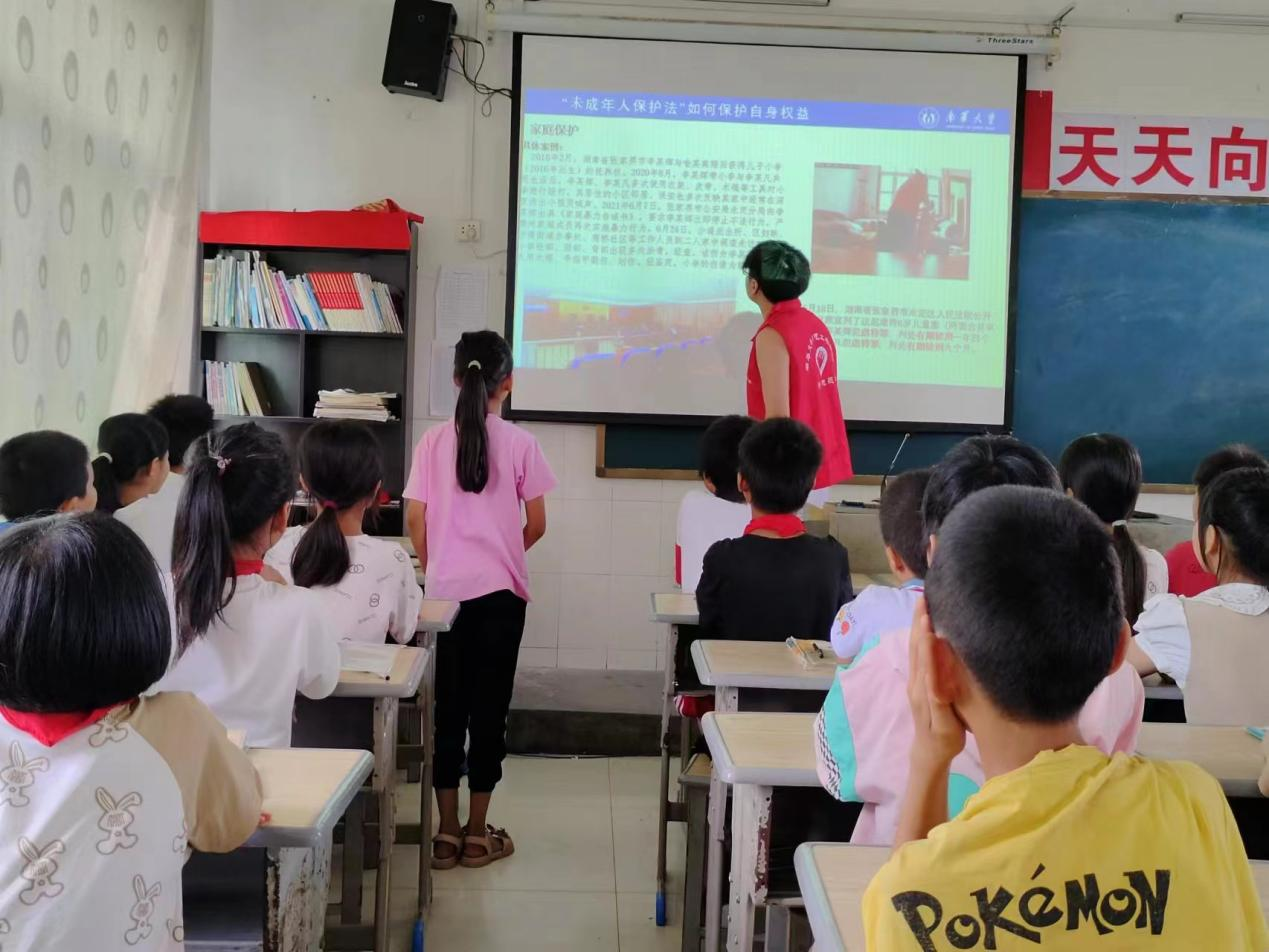 6月27日,365英国上市集团官网志愿团队在耒阳市南京乡中心完小开课,向小学生们普及《未成年人保护法》相关知识。