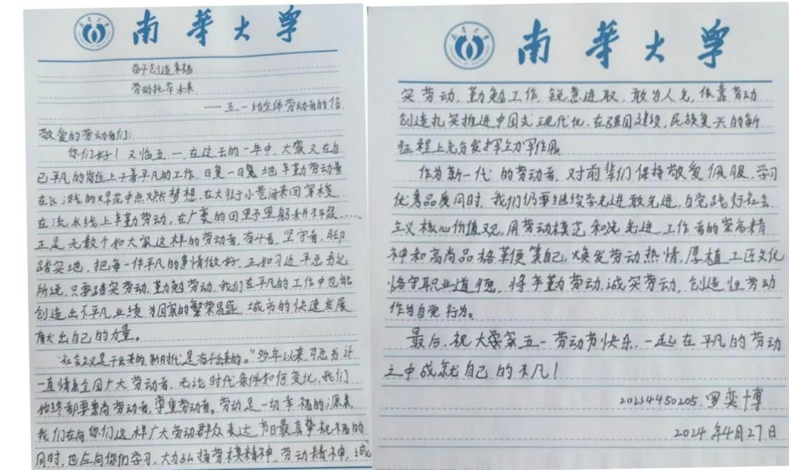“每当我看到劳动者们在烈日下清扫街道,不论风雨地坚守在自己的岗位上,在人声鼎沸的食堂中忙碌,我就深感他们的不易。他们是我们校园的维护者,为我们的生活带来了舒适、便捷与安全。这封信虽然微薄,但代表了我们对他们的深深敬意。”一位参与活动的同学如是说。