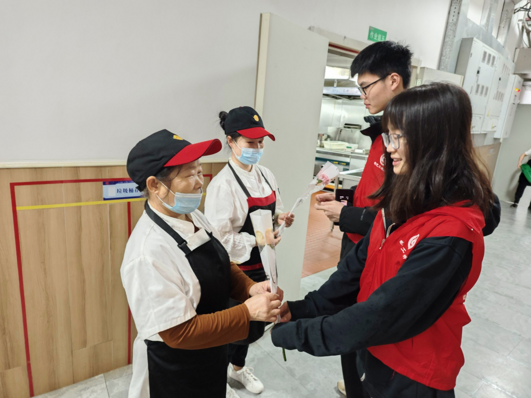 一束鲜花虽小,却能温暖劳动者们忙碌的身影;一份善意虽微,却能让平凡岗位绽放光彩。在本次活动中,365英国上市集团官网的同学们以实际行动诠释着"奉献、友爱、互助、进步"的志愿者精神,用真诚的问候和感恩之心,为校园里的劳动者们送去节日的温暖。这种双向的情感传递,正在校园里形成尊重劳动、感恩奉献的良好风尚。