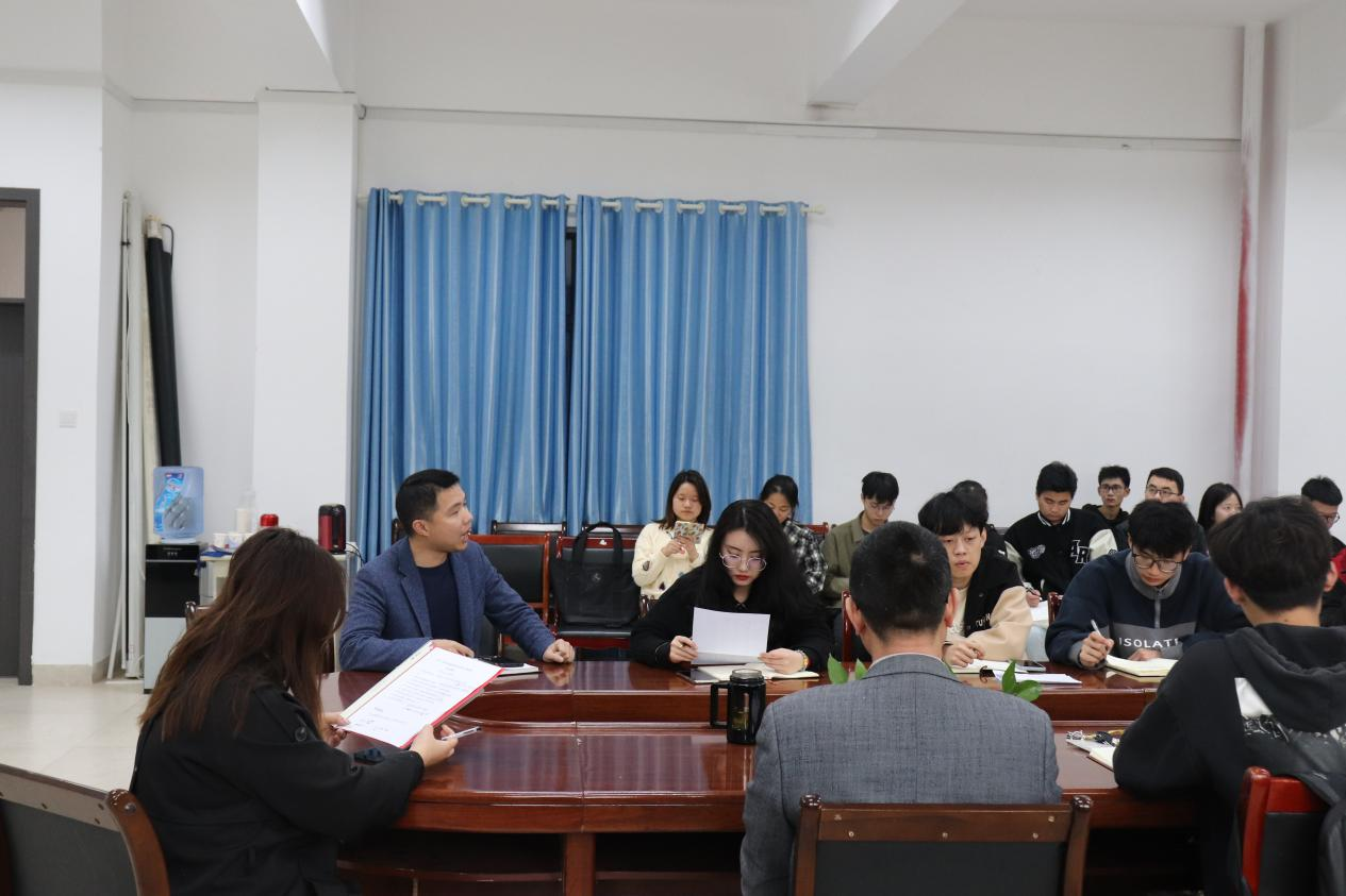 会议伊始,袁梦甜老师介绍了本次会议的目的和主要内容。院团学会主席团成员总结了分管部门上学期的工作,报告了本学期的工作计划。袁老师充分肯定了各个部门的工作成绩,提出了各个部门在本学期所需达到的工作目标,强调各个部门都应提高工作效率,加强宣传工作。其后,周忠禄老师对365官网团学工作提出几点建议,希望同学们不断提高自身能力、发挥模范带头作用。