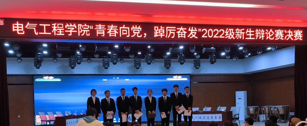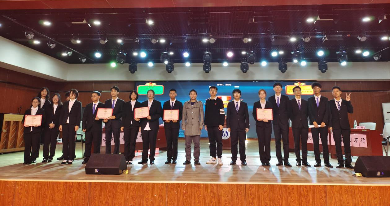 比赛结束,辩手们登上颁奖台领取属于他们的荣誉。每一位辩手都是闪光的金子,在辩论赛舞台尽情展现自己的光芒。因为热爱,因为勇气,他们胸有成竹,掷地有声,让大家看见了电气学子奋勇争先的态度和团结拼搏的精神。