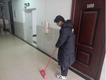 活动期间,同学们分工明确、各司其职、配合有序。学院大楼前,同学们撑伞在雨中清扫台阶上的脏物、拾捡水池中的垃圾;学院大楼内,同学们整理大厅内陈设物品、擦拭窗户、打扫地面;学生宿舍内,同学们整理内务、打扫卫生并消毒杀菌。在同学们齐心协力的劳动和无私奉献的付出下,学院大楼、学生宿舍都变得一尘不染、焕然一新。