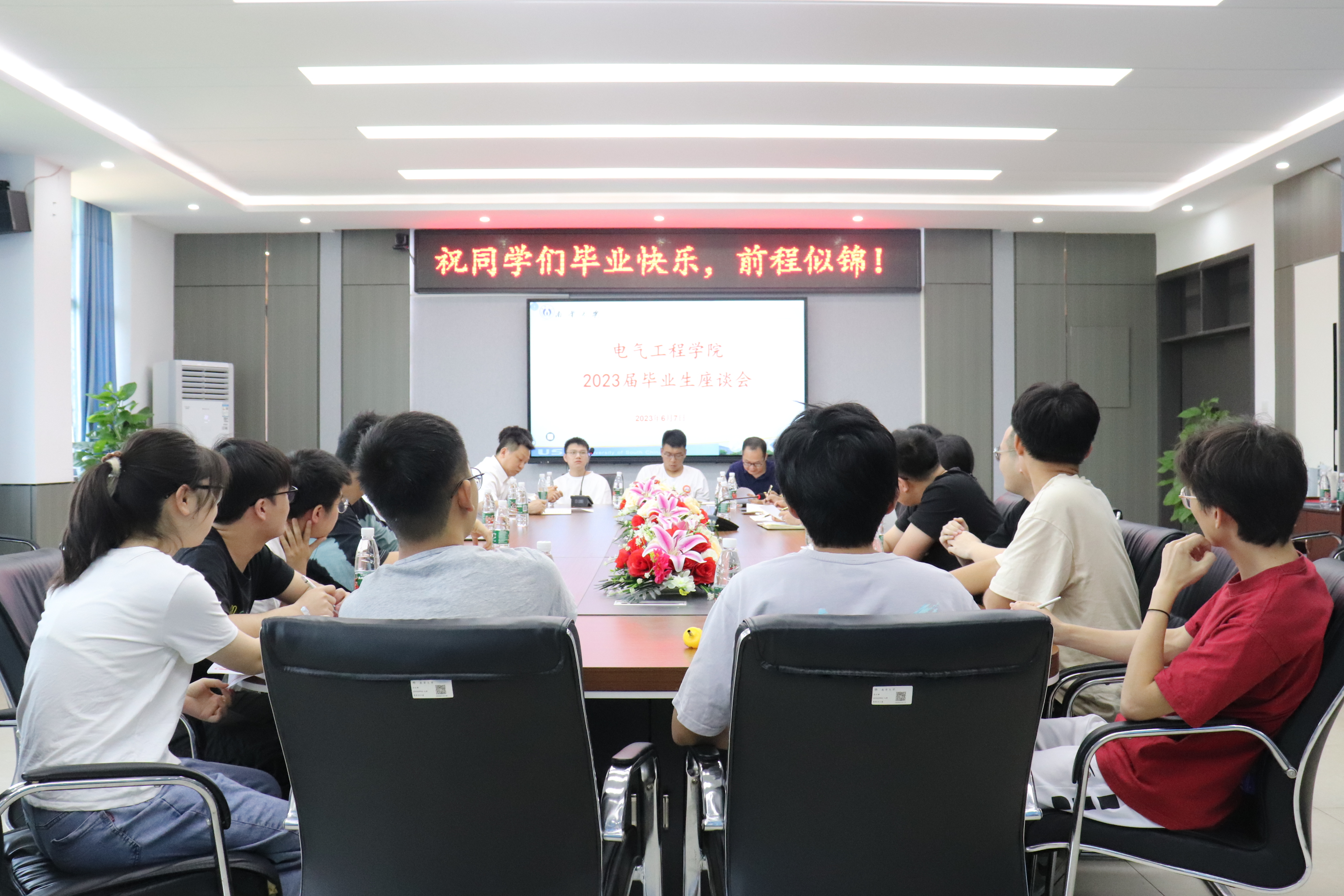 2023年6月7日,365英国上市集团官网于电气楼B301召开365英国上市集团官网2023届毕业生座谈会。365英国上市集团官网党委委员、副校长陈国民,365英国上市集团官网党委书记盛义发,副书记王国平,副院长阳璞琼、谭誉宇,全体学工室老师以及学院2023届毕业生代表参加此次会议。会议由盛义发主持。