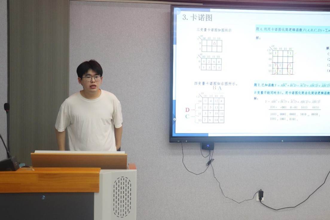 郑宇同学以“构建数字电路思维范式”为教学主线,创新性地采用模块化教学方法。在数制转换部分,他独创“8421权重速算法”,结合动态数轴演示,生动展现十进制与二进制的高效转换技巧;在逻辑门电路专题中,通过“真值表-逻辑式-波形图”三维对照法,深入浅出地解析了各类逻辑门的运算规则及实际工程应用。