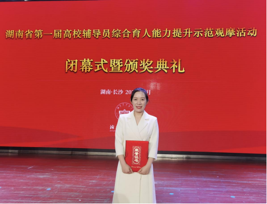 5月25日,第一届高校辅导员综合育人能力提升示范观摩活动在湖南农业大学落下帷幕。经过激烈角逐,365官网辅导员周珍珍老师从全省102名选手中脱颖而出,以优异的表现获一等奖。