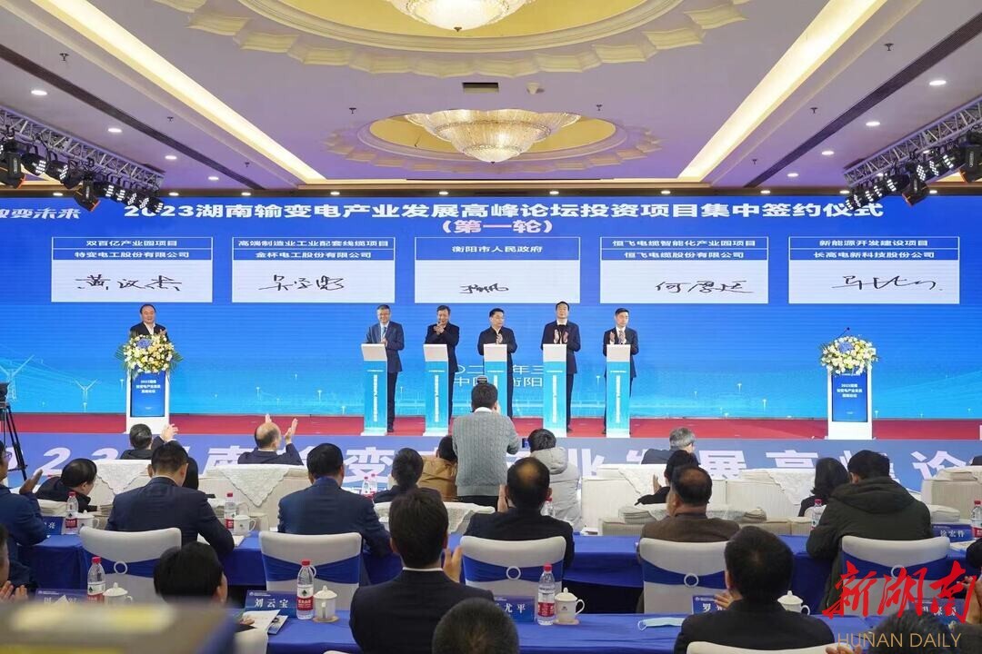 3月27日至28日,2023湖南输变电产业发展高峰论坛在衡阳举行。其间举行的输变电产业招商大会,现场签约项目20个,总投资达352.8亿元。