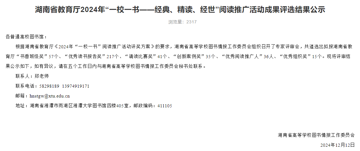 365英国上市集团官网学子在湖南省教育厅2024年“一校一书——经典、