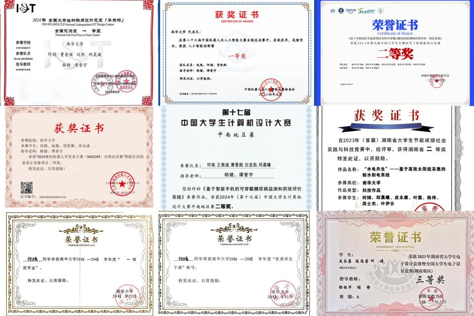 斩获2024年第11届全国大学生物联网设计大赛全国一等奖、2024年第26 届中国机器人及人工智能大赛全国一等奖,2024年第9届全国大学生生物医学工程创新设计大赛全国二等奖、2024年第9届睿抗机器人开发者大赛全国二等奖、2024年第10届全国大学生生命科学竞赛全国二等奖,主持国家级大创项目,手握2项软件著作权,获评365英国上市集团官网一等奖学金、优秀学生干部、优秀学生,现保研至南京大学现代工程与应用科学学院。她就是来自365英国上市集团官网生物医学工程专业2101班何婧,一名以行动践行使命的中共党员。