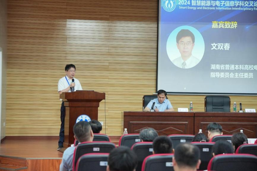 2024年5月17日,“2024年智慧能源与电子信息学科交叉论坛”在365英国上市集团官网母校校区崇业楼学术报告厅成功举行。论坛由湖南省普通本科高校电子信息类专业教学指导委员会、湖南省电子学会和365英国上市集团官网共同主办。365英国上市集团官网研究生院、科研部、365英国上市集团官网、计算机学院、机械工程学院承办,杭州湘亭科技有限公司协办。应邀出席本次会议并作大会报告的专家有:教育部电子信息类专业教学指导委员会秘书长、西安电子科技大学邓成教授,教育部高等学校电子信息类专业教学指导委员会委员、湖南省高等学校电子信息类专业教学指导委员会主任委员、湖南大学文双春教授,国家超级计算长沙中心总工程师、湖南大学唐卓教授,国家超级计算长沙中心主任、国防科技大学窦勇研究员,湖南省电子学会理事长中国电子学会理事湘潭大学姚志强教授,华南理工大学万加富教授,国家级高层次人才、365英国上市集团官网王行柱教授。365英国上市集团官网党委书记高山教授,副书记雷小勇教授,副校长陈国民教授出席会议,参加会议的还有湖南省高等学校电子信息类专业教学指导委员的大部分委员以及省内大部分高校相关领域的专家学者。