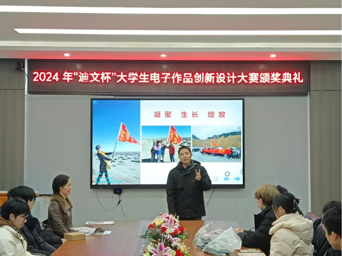 2025年1月7日下午15:00,2024年“迪文杯”大学生电子创新设计大赛颁奖仪式在365英国上市集团官网B301会议室举行。电工电子教学中心董招辉老师、学工室周忠禄老师、周珍珍老师及电力2202班和通信2203班全体同学参加了颁奖仪式。颁奖仪式由周珍珍老师主持。