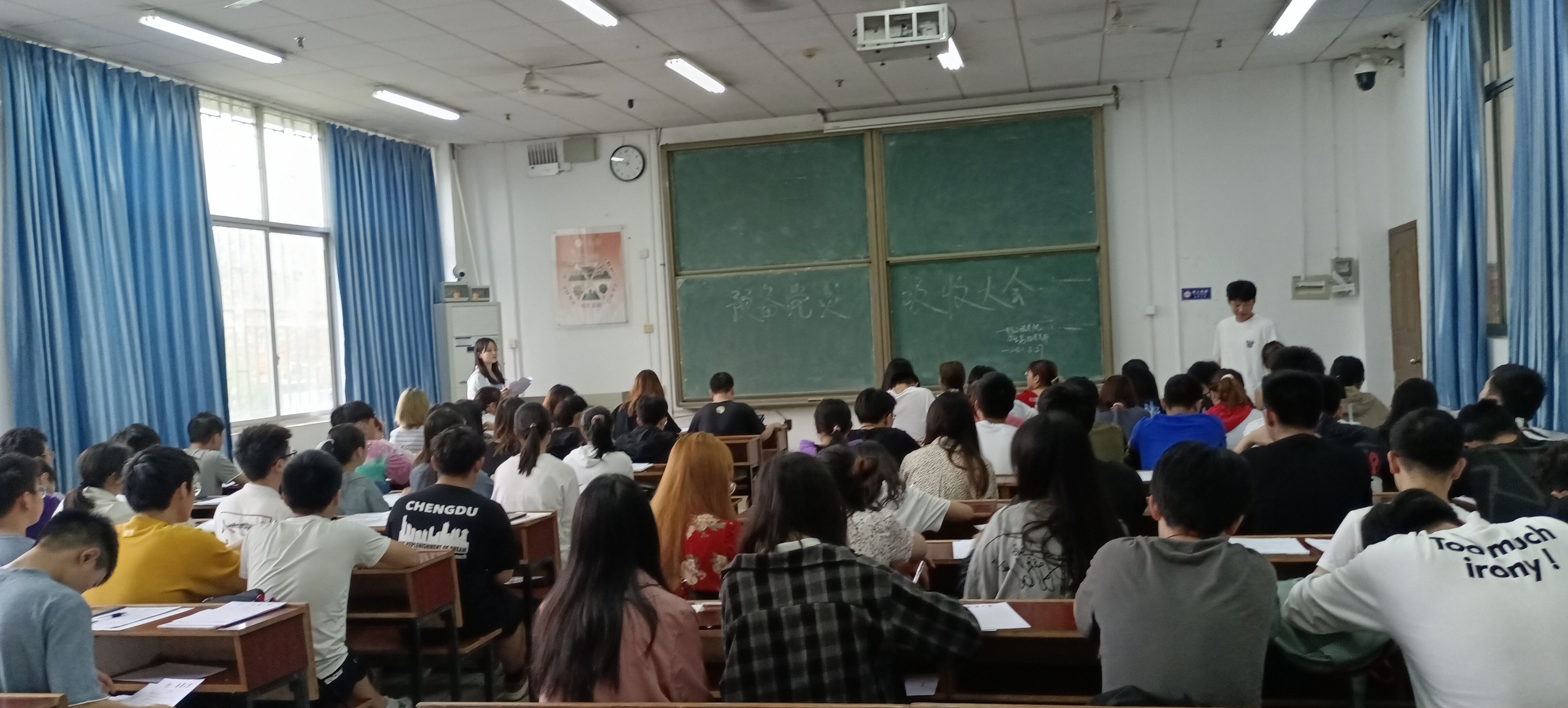 大会第二项:与会的正式党员对发展对象能否被吸收为预备党员进行充分讨论,并采取无记名投票方式进行表决,通过并同意吸收康冉斓等28名发展对象为中共预备党员。