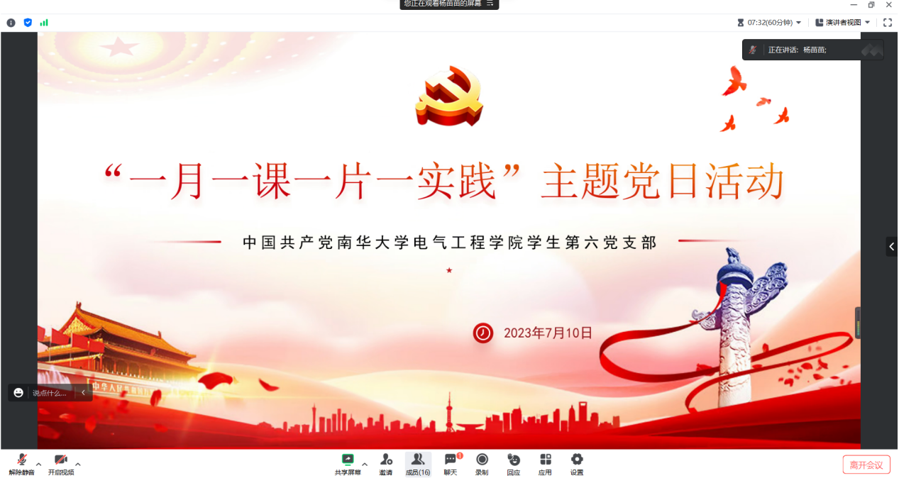 为全面深入学习贯彻党的二十大精神,引领全体学生党员坚定信念,凝聚奋进力量,2023年7月10日,365英国上市集团官网学生第六党支部于线上开展七月份的“一课一片一实践”活动。党课由支部副书记杨苗苗主持,支部书记袁梦甜及支部全体党员参与会议。