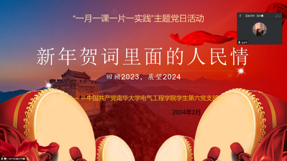 本次会议,王林雪同志带领全体党员认真学习领会习近平总书记新年贺词里面的人民情,习近平总书记的新年贺词中对2024年的展望激励着同志们一起向更美好的生活前进。
